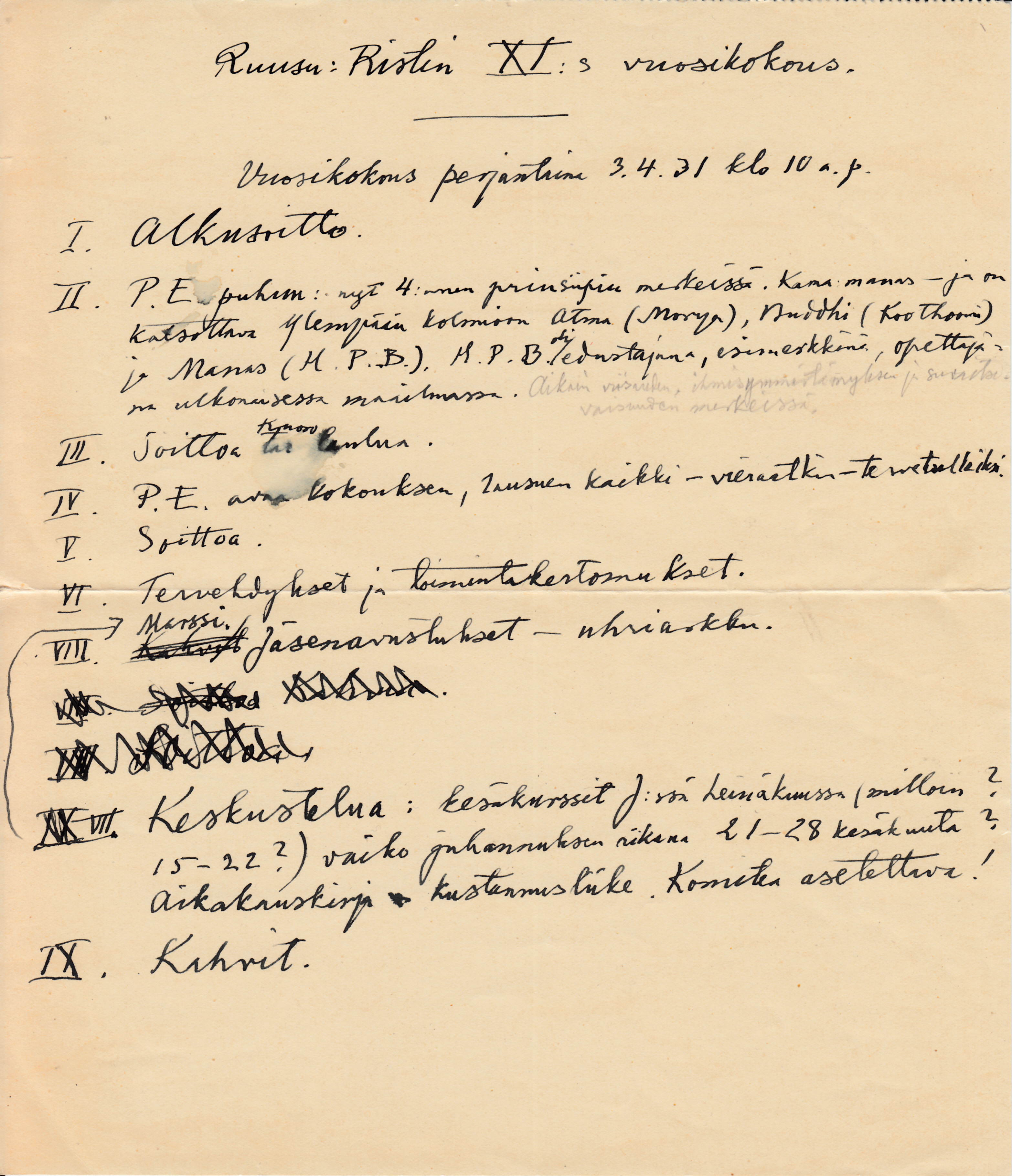Kutsumus Teosofisen Seuran kymmenenteen vuosikokoukseen